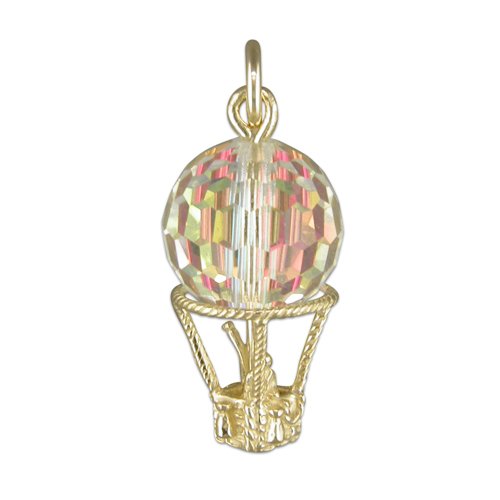 A 9ct. Solid gold high quality hot air balloon charm with crystal